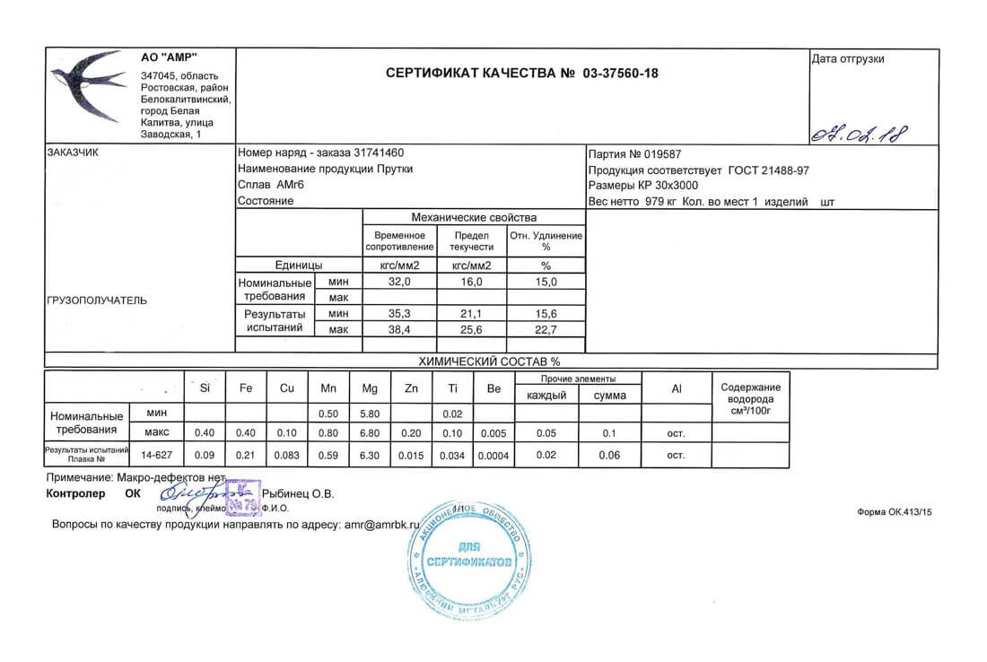 • Пруток В95 – сплав с повышенным содержанием цинка (5-7%). Обладает увеличенной твердостью в сравнении Д16. Также требует антикоррозионной обработки.